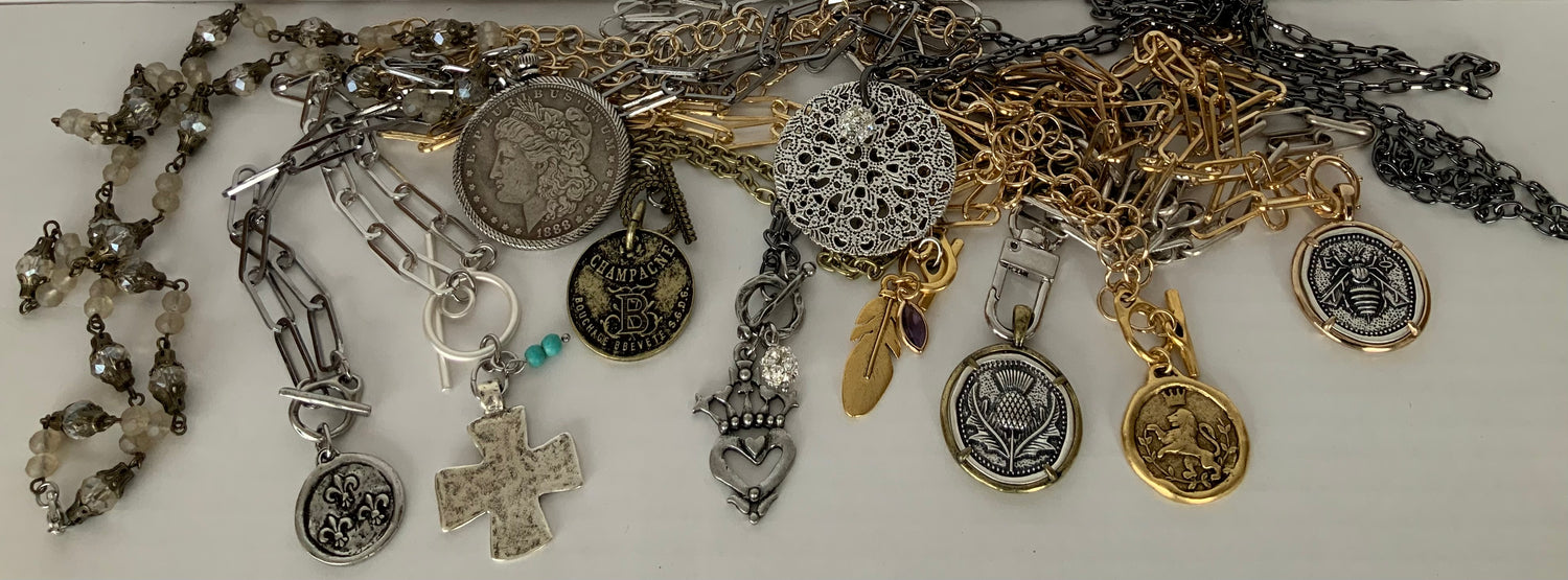 Necklace CollectionWide variety of handmade necklaces primarily make from antique vintage silver plated...