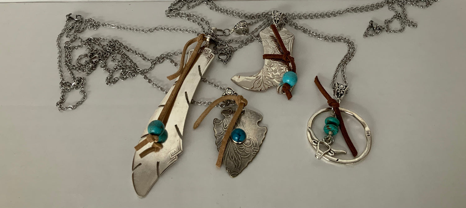 Southwestern CollectionSouthwestern themed jewelry pieces made from silver-plated antique vintage serving trays. Also...