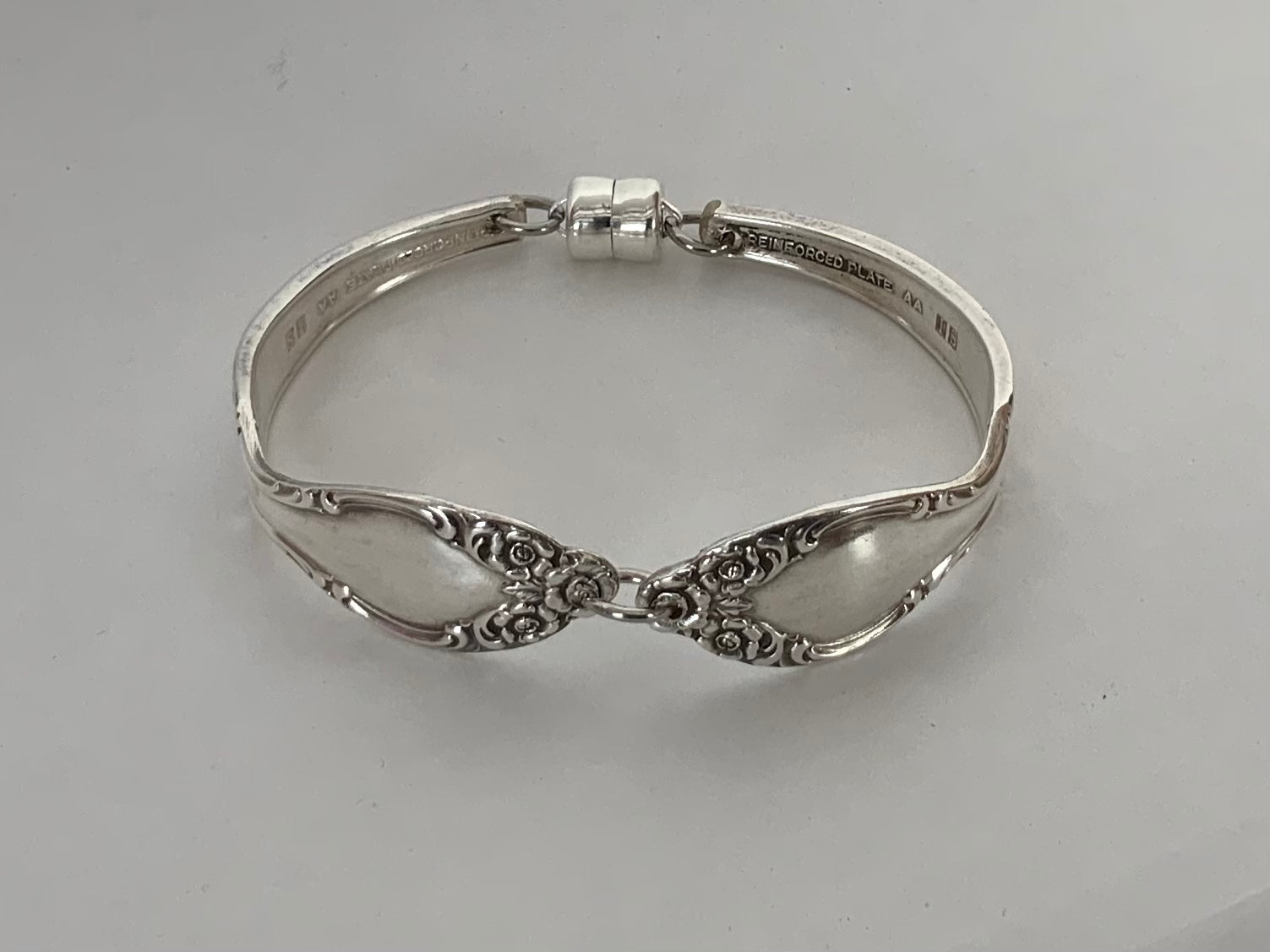 Silver plated antique vintage silverware bracelet, magnetic closure. Size Small.