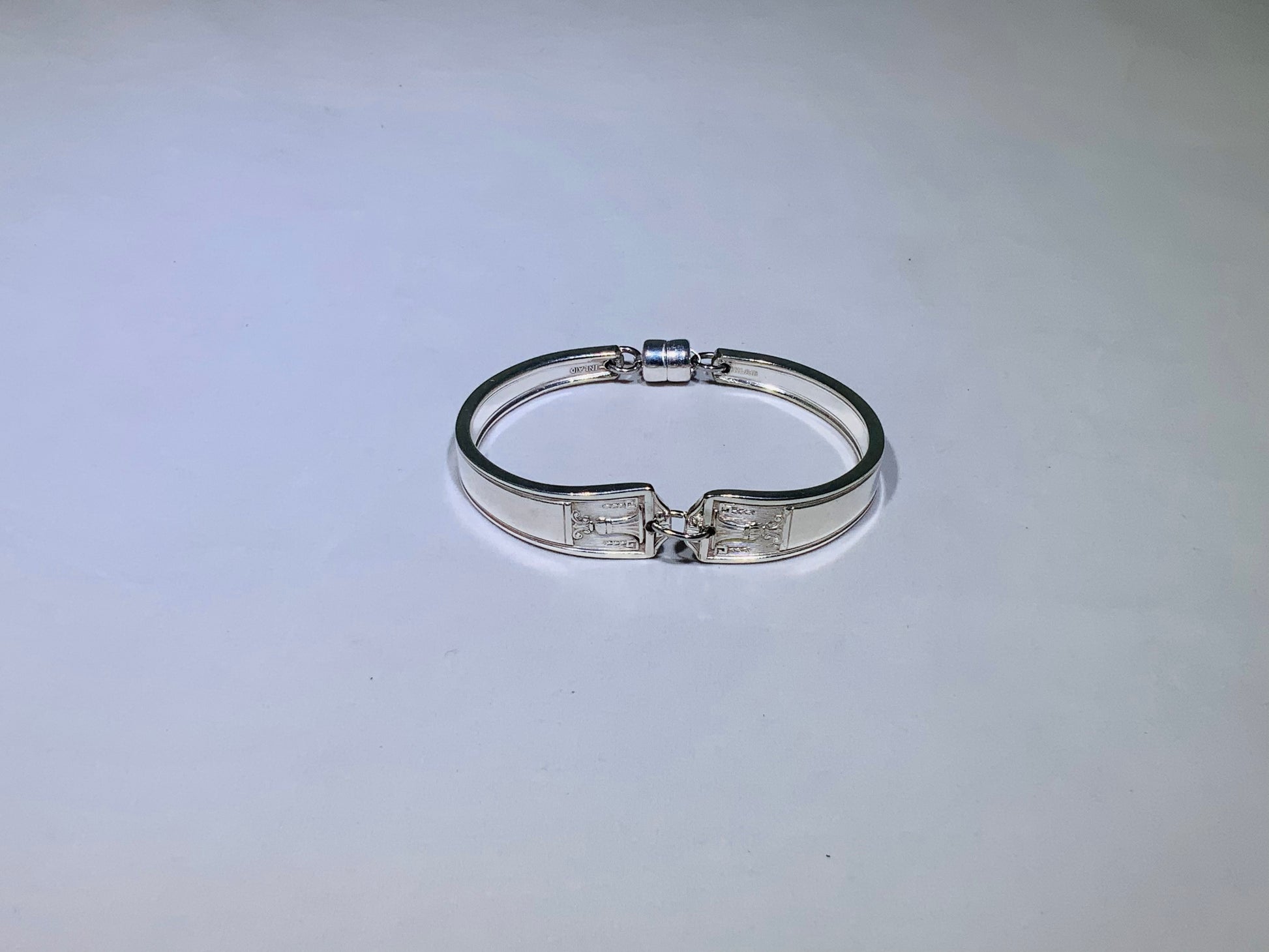 Antique vintage silver plated bracelet. Magnetic clasp. Size Large.