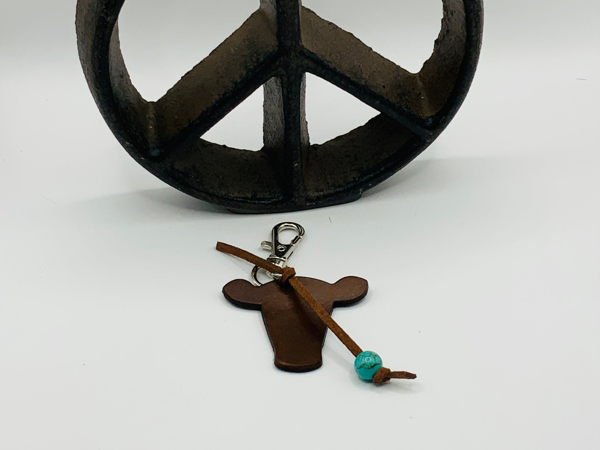 Adorable cow bag tag for a purse or as a keychain. Medium brown dye used.
